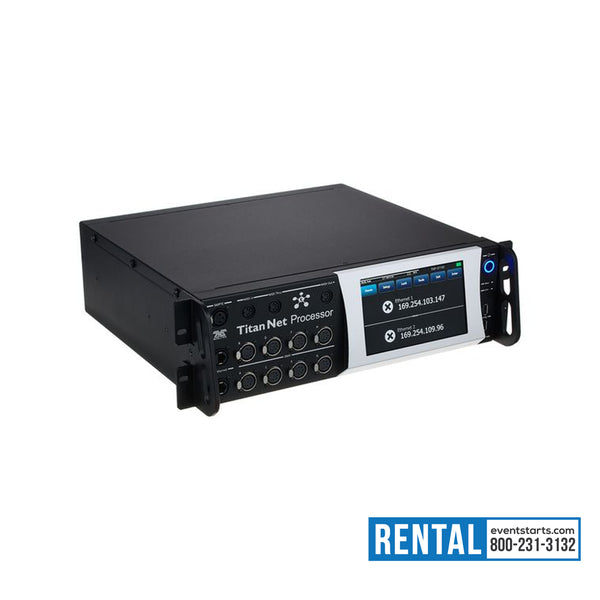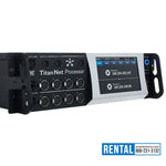 Titan Net Processor is a control processor for ArtNET network connections and backup control for consoles with the TITAN operating system, a 7-inch touchscreen display, 8 physical DMX 512 lines, up to 16 DMX 512 lines via Art-Net, a built-in UPS, and a 19-inch rack mount.